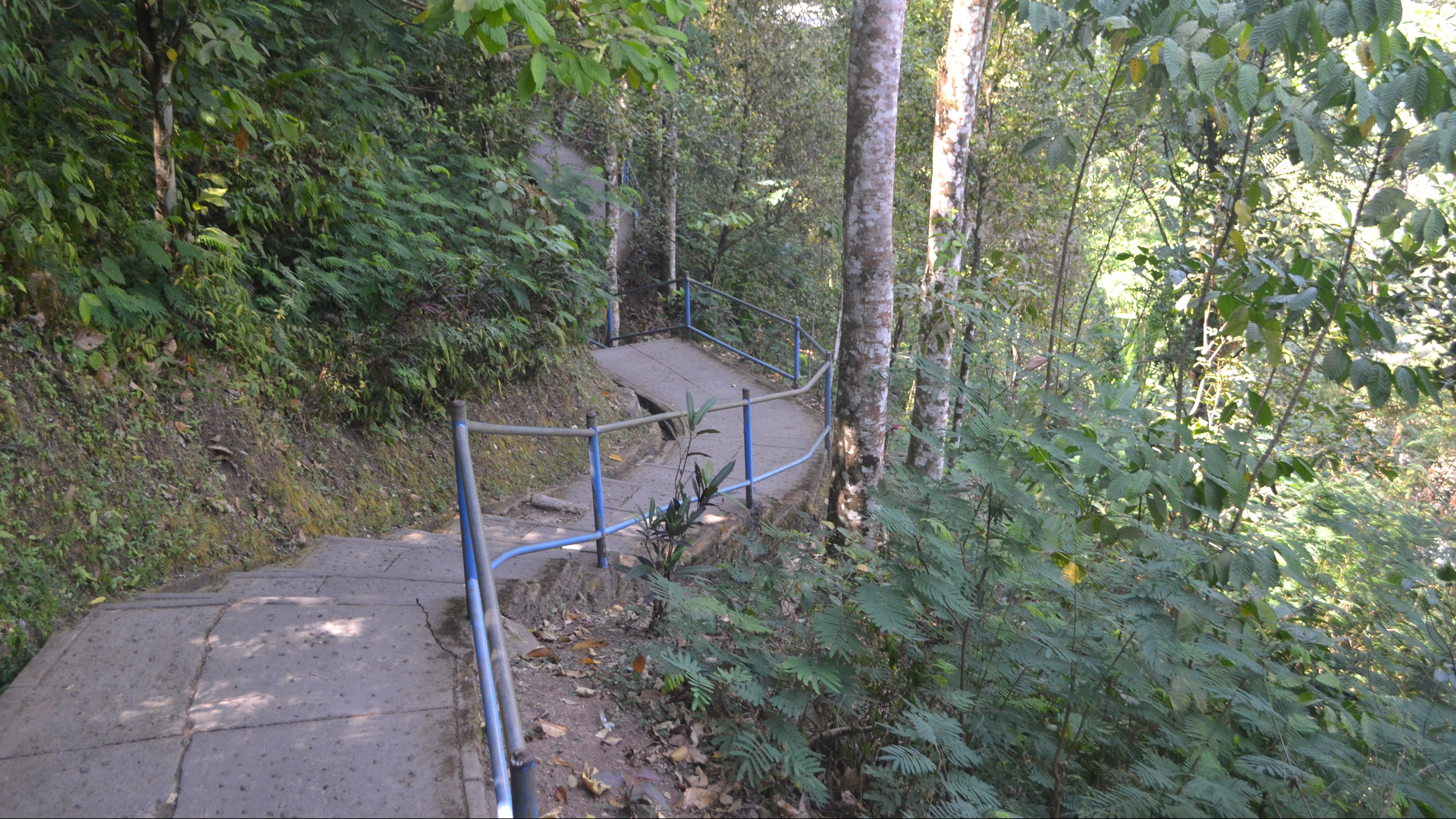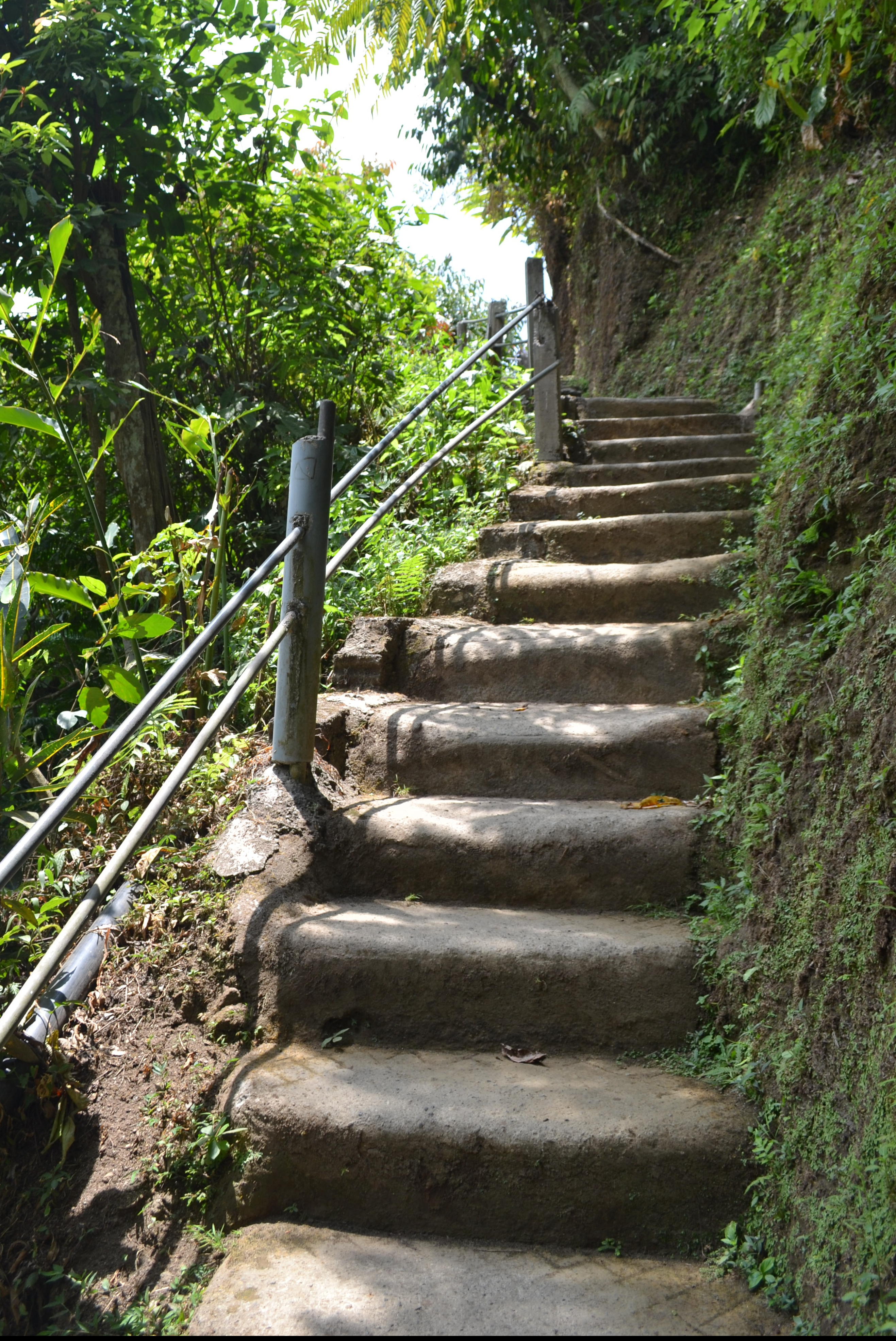 You walk to the start of the path which goes down steeply, also here many stairs, there is a handrail but that is not really solid.