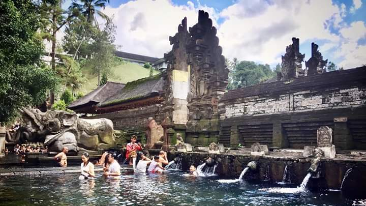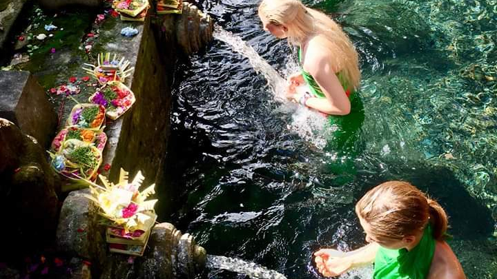 Melukat is a spiritual cleansing ceremony for Balinese people. This ceremony is performed through the generations of Hindus until now. Spiritual cleansing means cleaning your mind and soul, there are many holy places like this where Balinese people can do this traditional ceremony. Melukat comes from sulukat, the word su means good and lukat means purification. The Melukat ceremony is led by an Hindu priest.