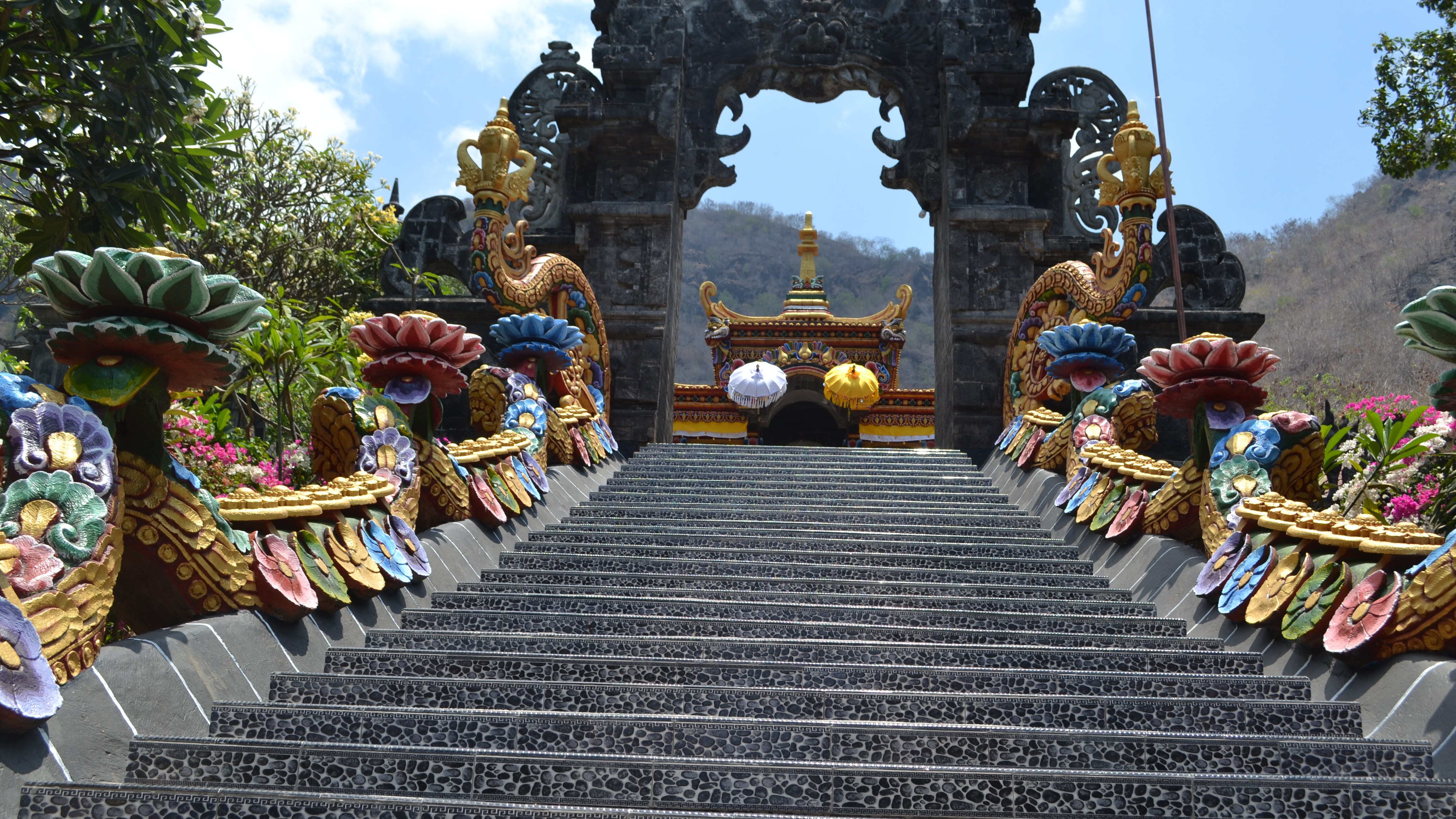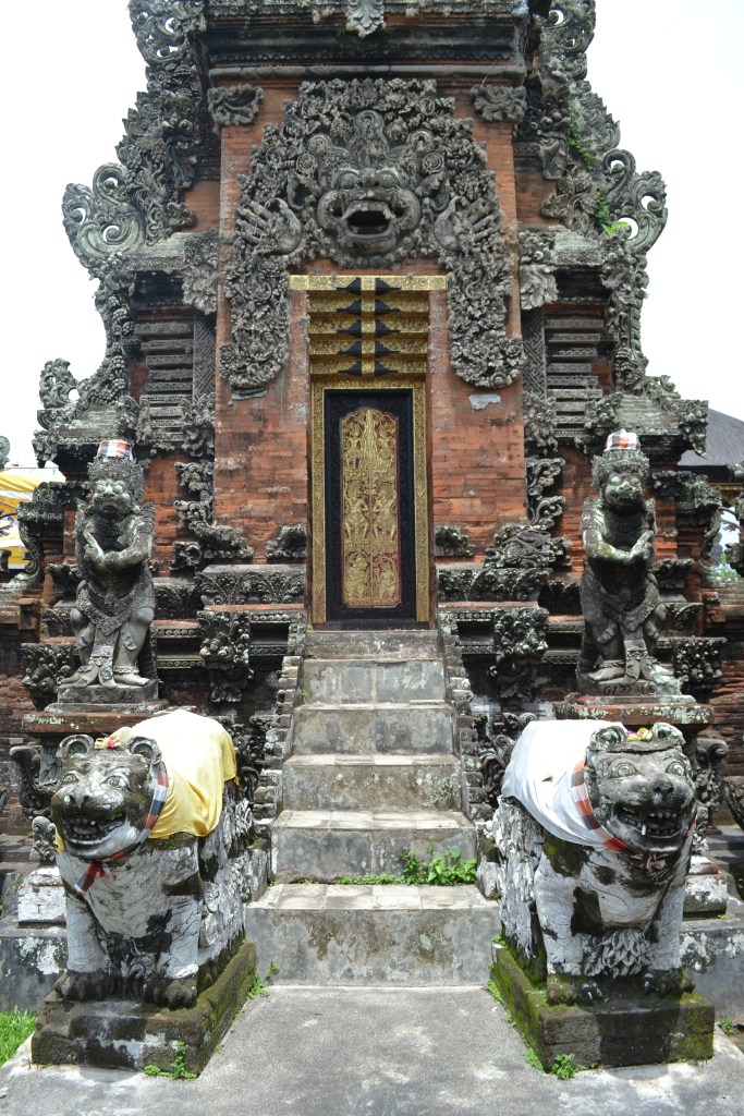 The priests, who take care of the temple, are very hospitable to visitors. The Hindus who come to pray in this temple come not only from the surroundings, but from all over Bali and also from outside the island. A special thing about this temple are the bright colours. The statues and temples all have bright colours, it looks a bit Chinese, also looks a bit on the Buddhist temples in Thailand. And what also stood out were the monkeys present in the temple and not only monkeys but also cats and dogs.