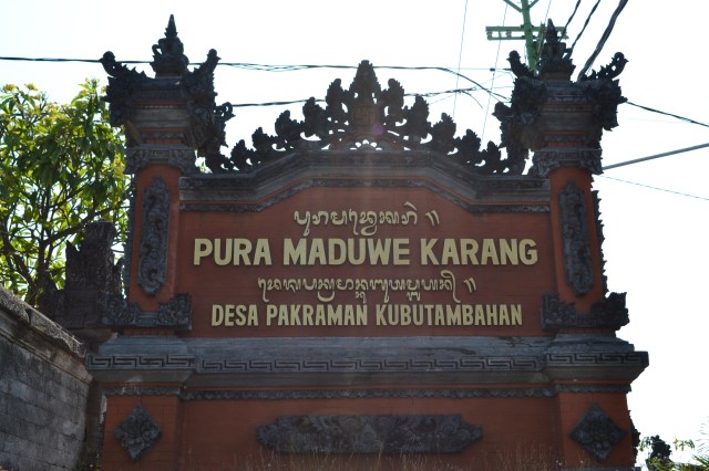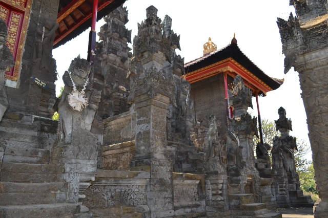 We leave Lovina at 9 in the morning and drive east, the first stop is 12 km east of Singaraja with the Pura Meduwe Karang in Kubutambahan. The temple is dedicated to Batara Meduwe Karang (God of the ground). The temple provides divine protection of crops and fertile soil. There are three rows of Ramayana statues at the entrance. The temple is walled and decorated with columns.