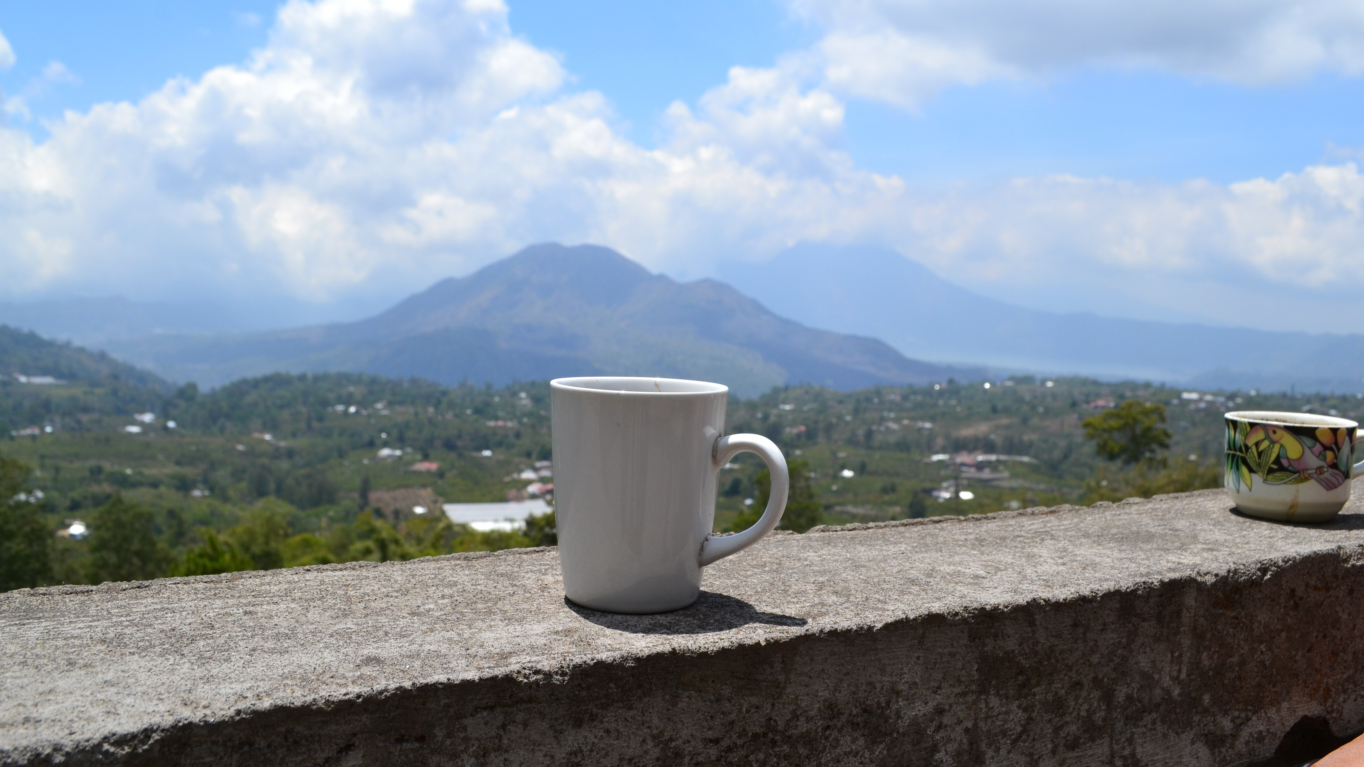We reach the village of Kintamani with the Batur volcano as its central point. Time for coffee and at a local warung we drink coffee with a nice view of the volcano, often you can also get fresh pisang goreng (fried banana).