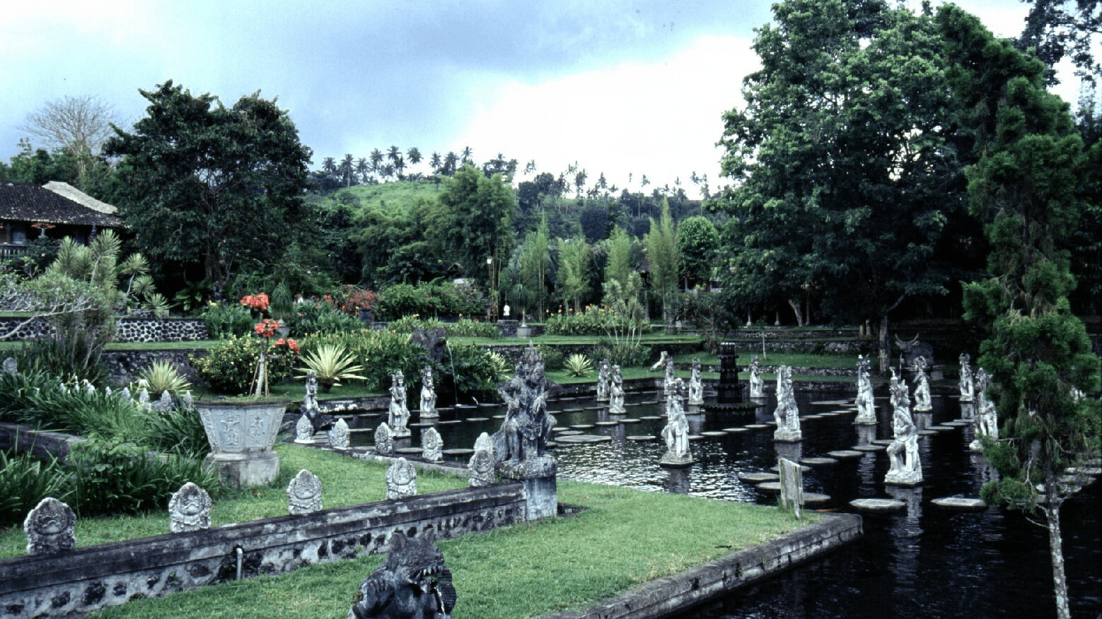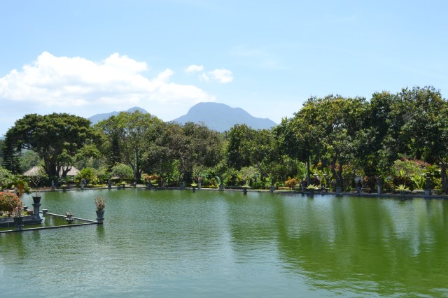 Tirta Gangga water palace is a maze of pools and fountains surrounded by a lush garden and stone carvings and statues. The one hectare complex was built in 1946 by the late King of Karangsem but was destroyed almost entirely by the eruption of nearby Mount Agung in 1963. It has been rebuild and restored in the years after.