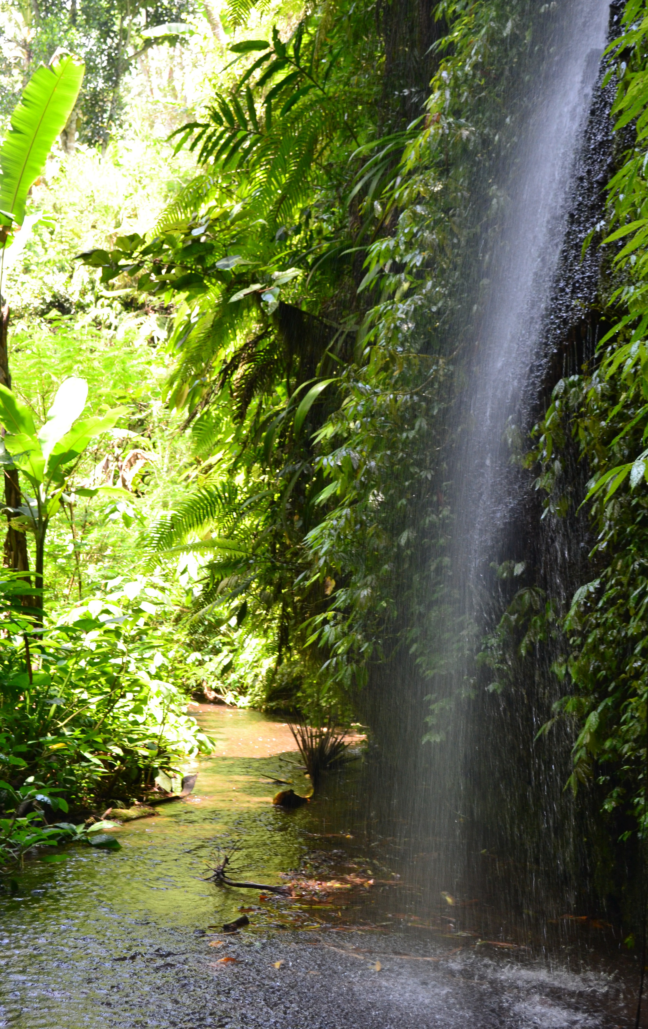When you go down the many stairs, at the end, you step into the water, a shallow water stream, and you have to walk through the water, at the end of the gorge there is a kind of cave, but the strange thing is that the cave is open at the top. You have to crawl underneath a large rock to get to the other side, because of the sunlight shines through the cave it looks really beautiful. It has a magical look and the area is beautiful.
