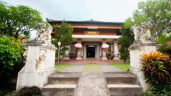 In the museum there are many old objects and there are Dutch-language books about the former Dutch East Indies. There are paintings and drawings with Dutch texts and there are pictures of W.O.J. Nieuwenkamp, a Dutch painter who at the beginning of last century, was travelling through Indonesia on the bicycle. The image of him can be found on the wall of the Pura Meduwe Karang (12 km east of Singaraja).