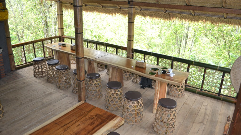 You will be welcomed by the owner Gede and he will serve you coffee or lemongrass tea, pisang goreng with palm syrup and palm sugar and he will explain about the process of roasting the coffee beans, it is also possible to buy the coffee.
